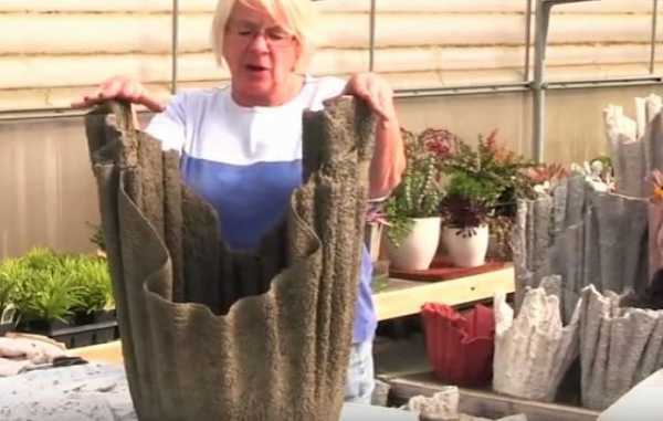 Посмотрите, какие красивые цветочные контейнеры можно сделать из цементного раствора и старой тряпки. Вот уж действительно, поделки из подручных материалов!