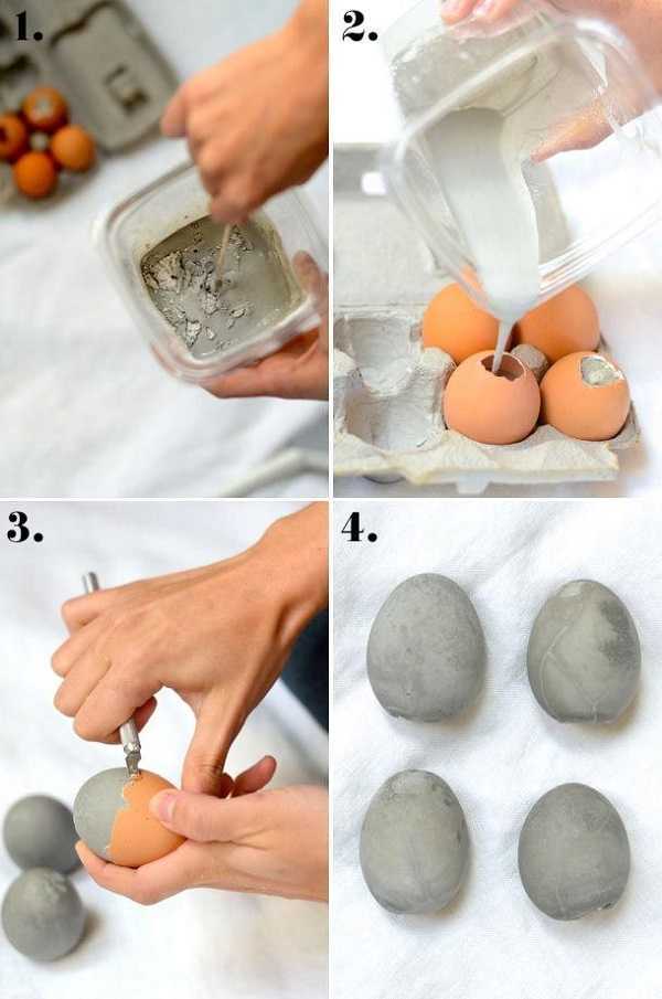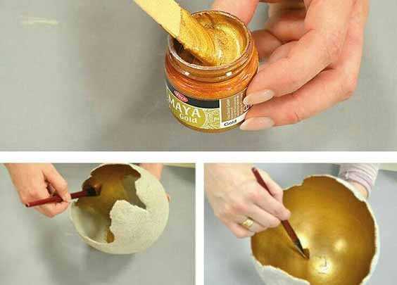 После высыхания раствора, убираем шарик и красим внутреннюю часть яйца. Можно использовать как пасхальный декор на даче — сделав в нем цветочную композицию из первоцветов.
