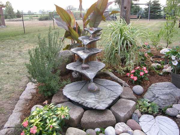 Садовые поделки своими руками. Садовый фонтан с листьями.