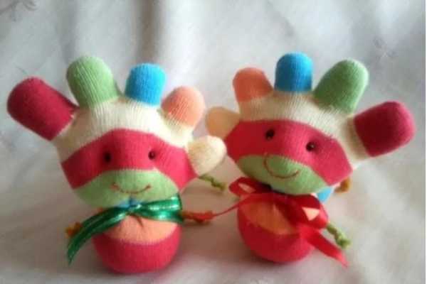 У всех дома есть носки, поэтому мы хотели предложить идею поделки из обычных носков, а точнее игрушку. Существует множество вариантов различных изделий из носков, такие как Снеговик, сова, кот, мишка, зайчик и т.д. Наполнить такие игрушки можно ватой, синтепоном или крупой. Игрушки с крупой будут особенно хороши маленьким деткам для развития моторики. Делать такие поделки своими руками из подручных средств в домашних условиях интересно как с детьми, так и самостоятельно. Так, например, из носка с пальчиками можно создать яркую полосатую гусеницу и подарить ее на Новый год 2018 своему ребенку.
