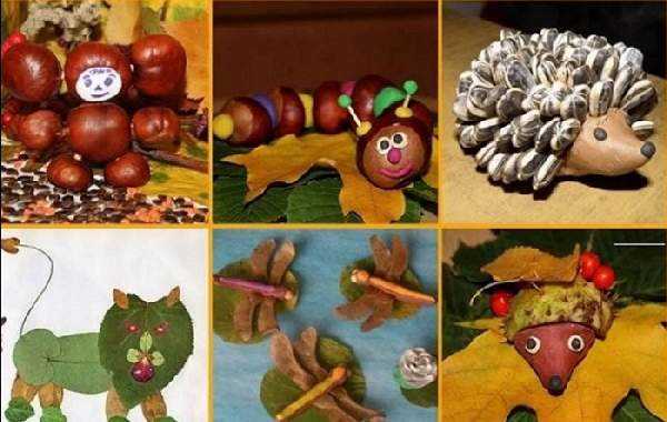 Такие поделки из сухих листьев можно сделать вместе с детьми