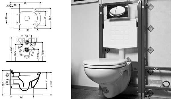 Важно при установке инсталляции и унитаза. Подвесной унитаз должен быть закреплён на расстоянии 18 – 23 см от инсталляции. Поэтому перед покупкой следует заранее произвести замеры.