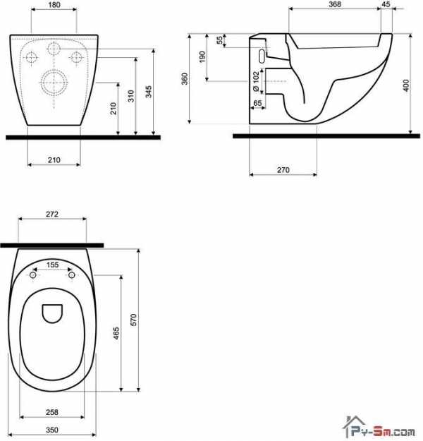 Чаще всего, стандартный подвесной унитаз будет иметь размер 40х55 см. Тогда за унитазом следует выделить место в ширину 10 – 25 см, а в длину 35 – 50 см. Для удобства пользования унитазом, нужно выделить ещё свободное место по 20 см с обеих сторон и 80х60 см спереди.