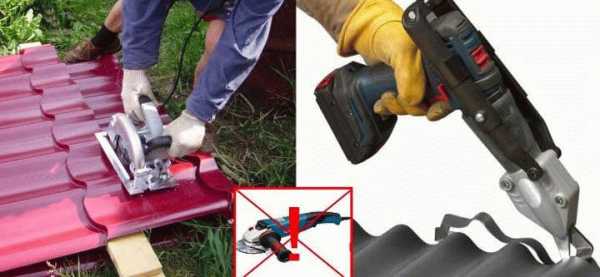 - При резке металлочерепицы запрещено использовать болгарки – можно прожечь защитное покрытие, и это приведет к дальнейшей коррозии материала, тут и гидроизоляция не поможет.
