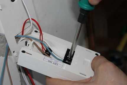 К ближайшей стене выводим провод от датчика. Чтобы не получилось неровностей, вырезаем в теплоизоляторе канавку под кабель. Терморегулятор закрепляем на стену, строго следуя при этом инструкции производителя, и подключаем электрические провода.