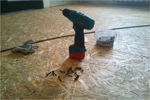 Для избавления от неровностей листы крепят клеем или смесью из гипса и ПВА, затем прибивают гвоздями или специальным степлером. Чтобы выровнять поверхность по горизонтали, необходимо укладывать листовой материал на лаги, приклеенные к полу. При каждом способе укладывания листов швы необходимо тщательно шпаклевать. На заключительном этапе поверхность покрывают олифой.