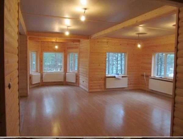 - Пол и потолок. Выбираем вид напольного покрытия, он должен быть прочным, долговечным, привлекательным. Можно постелить линолеум, плитку, ламинат, ковровое или деревянное покрытия. Потолок для дома из дерева необходимо привести в эстетичный вид и спрятать в нем все подводы электрокоммуникаций.