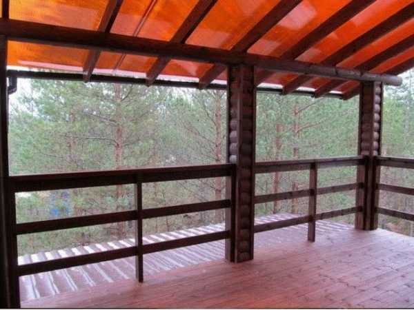 На открытой веранде использовались доски пропитанные террасным маслом, а на крышу 12 мм поликарбонат.