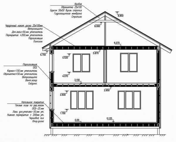 6) Первый этаж возводится на высоту от 2,4 до 3 метров, после чего монтируется пол второго этажа ( если предусмотрен), мансарда или чердак.