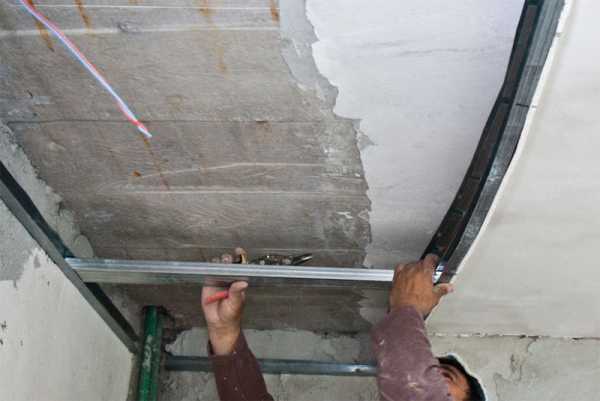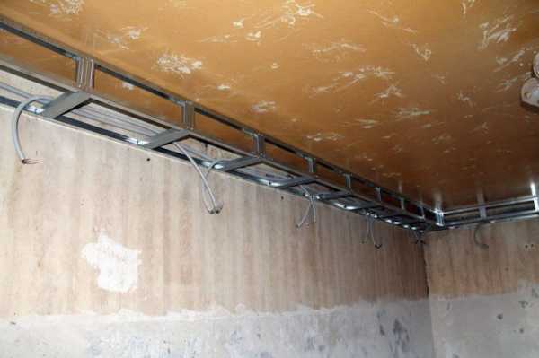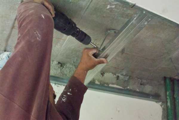 Крепление металлического профиля к потолку.