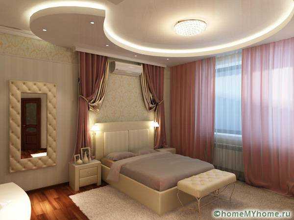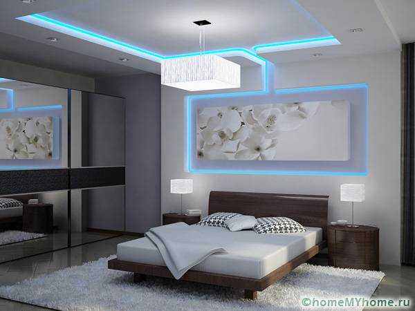 Потолки из гипсокартона для спальни. Фото и описание работ по установке светильников
