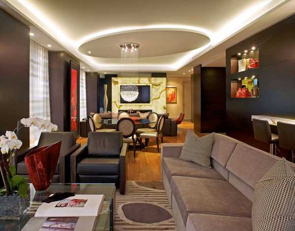 Двухуровневый потолок прекрасно улучшает восприятие пространства