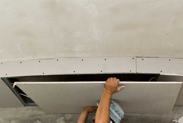 Процесс изгибания листа гипсокартона