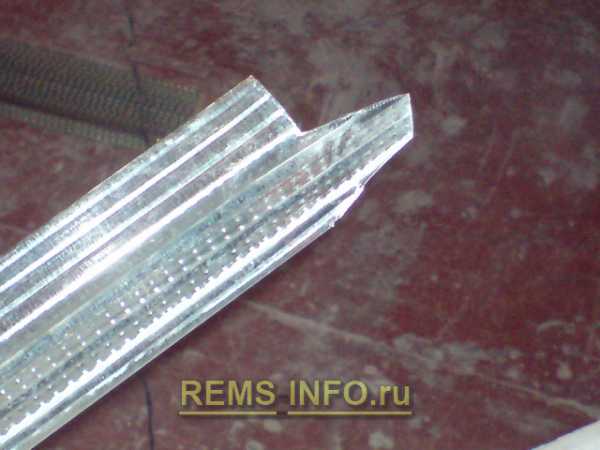 Чтобы боковая стенка профиля не мешала сверлить отверстия или вкручивать саморезы, следует через каждые 15 см сделать в ней прямоугольные вырезы шириной 2 см. Разумеется, сделать это нужно до того, как вы приступили к монтажу профиля.