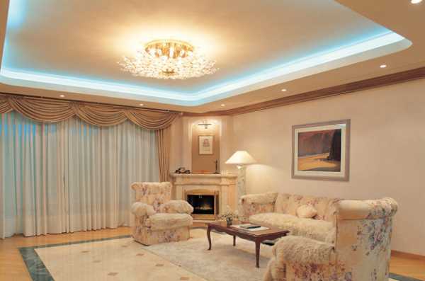 Освещение двухуровневых потолков играет декоративную роль даже при дневном освещении