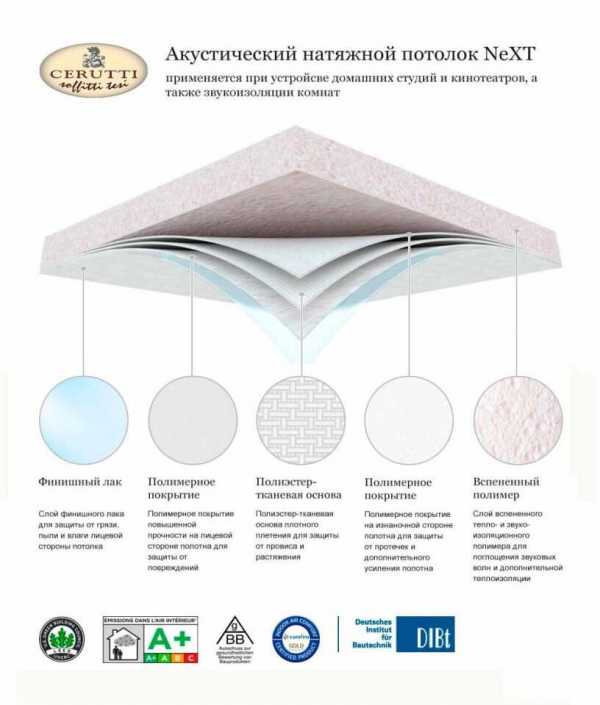 А если укладывать дорогой «Тексаунд», то процесс производится быстро и без дополнительных материалов, что сокращает расходы. А вот теперь подумайте, натяжной потолок с шумоизоляцией какого вида лучше всего выбрать?