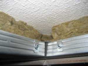 Если в качестве звукоизоляции планируется использовать плиты из минеральной ваты, то есть смысл сделать расстояние между направляющими немного уже ширины этих плит. Это облегчит приклеивание звукоизоляции к потолку: ее элементы будут вставляться в ячейки каркаса с небольшим усилием, и их не надо будет поддерживать до высыхания клея.