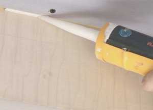 Клей наносится не на всю поверхность плиты или панели. Достаточно пяти точек: четыре располагаются по углам, а пятая – в середине элемента. Строительные грибки выполняют страхующую функцию. Но можно обойтись и без них, особенно при монтаже звукопоглощающих панелей, которые вставляются друг в друга по системе «паз-гребень».