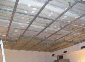 - Каркас из шумоизоляционных плит крепится непосредственно на потолок.
