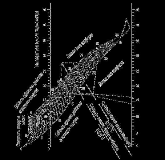 Для измерения влажности применяется психрометры, которые состоят из двух ртутных термометров: сухого и влажного. Резервуар влажного термометра окутан марлей или другой гигроскопической материей, конец которой опущен в воду. За счет испарения влаги температура на влажном термометре понижается. Отличие в показаниях влажного и сухого термометров тем больше чем меньше относительная влажность и обусловлено отводом тепла от влажного термометра за счет испарения влаги. Только при относительной влажности равной 100% показания термометров совпадают. Относительную влажность определяют по выведенным формулам пересчета или номограмме, зная показания холодного и влажного термометров.