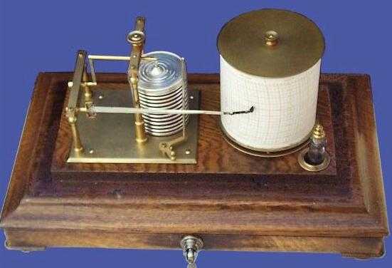 Принцип работы гигрографа (рис. 3) аналогичен работе барографа и термографа.