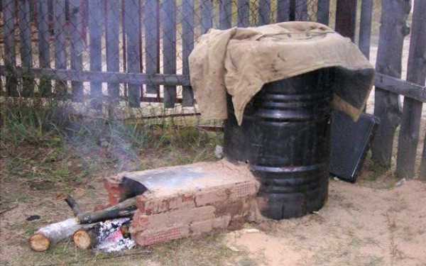 на другом конце траншеи устанавливается старая металлическая или деревянная бочка без дна;