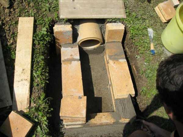 | После того, как стяжка застынет, устанавливают слой гидроизоляции из листов рубероиды. Приступают к монтажу кладки. Основные части делают из стандартного кирпича с пустотами. Топку и другие части, где предполагается высокая температура выкладывают из огнеупорного шамота. В нижней части устанавливают дымоход из металлической трубы. На этом уровне заливают еще один слой армированной стяжки. | |