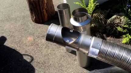 Для подключения газового котла к дымоходной конструкции используют специальный тройник, на который монтируется устройство для сбора конденсата