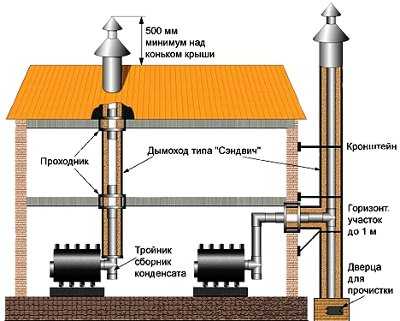 А также дымоход может иметь моно конструкцию, у которого из-за низких теплотехнических характеристик делается ремонт через каждые 5-7 лет.