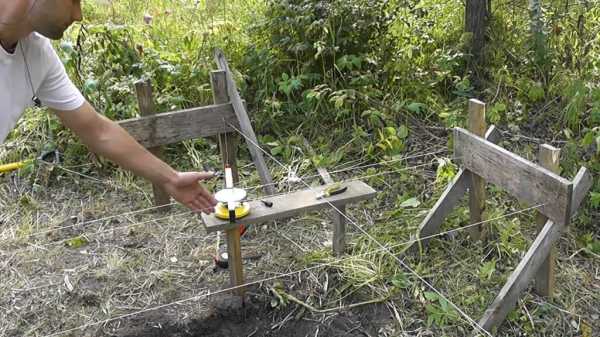 - Свяжите или сварите каркасы из арматуры «рифленки» диаметром 8—12 мм, чтобы получились ячейки 10 х 15 см. Установите их в траншею на подставках высотой 50 мм.
