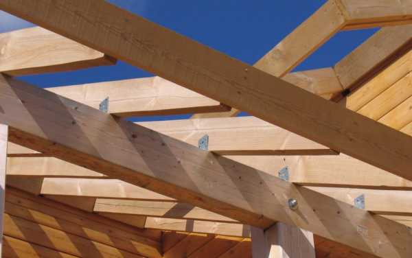 - Установите стропила из доски 15 х 5 см (минимальное сечение) с шагом 600 мм под размер плитного утеплителя. Прикрутите их к опорам с помощью стальных уголков и саморезов.