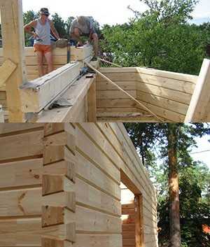 Поверху стен укладывается брус с меньшими размерами, который служит обвязкой для устройства крыши.