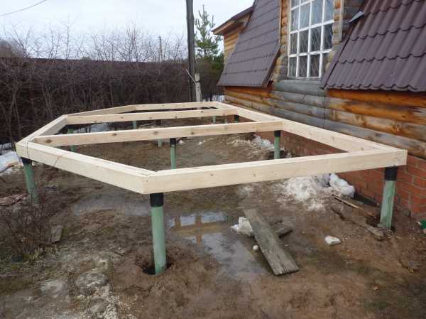 Для веранды из бруса подойдет свайный фундамент. Его легко выполнить своими руками. К тому же такое основание экономически выгоднее. При этом конструкция не будет соединена с главным фундаментом.