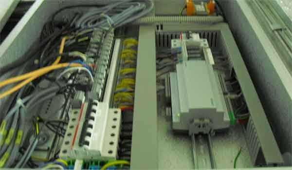 Модуль управления системой вентиляции из серии ПВУ. Здесь присутствует силовая коммутационная группа, а также контроллер «Corrigo», обеспечивающий полную автоматизацию процессов обработки воздухаМодуль управления размещается на верхней части корпуса приточно-вытяжной установки. Для пользовательского управления в удобное место выносится кнопочный пульт.