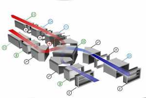 Оборудование вентиляционных систем до недавнего времени разделялось на две отдельных составляющих – приток и вытяжка. Каждую из двух функций вентиляции обеспечивала индивидуальная система. Нередко приточная и вытяжная вентиляция монтировались на значительном удалении одна от другой и объединялись только в порядке обслуживания общего объекта. Современные конструкции систем вентиляции изменили ситуацию. Теперь чаще встречается вентиляционная приточно-вытяжная установка (ПВУ), объединяющая общей конструкцией каналы притока и вытяжки.
