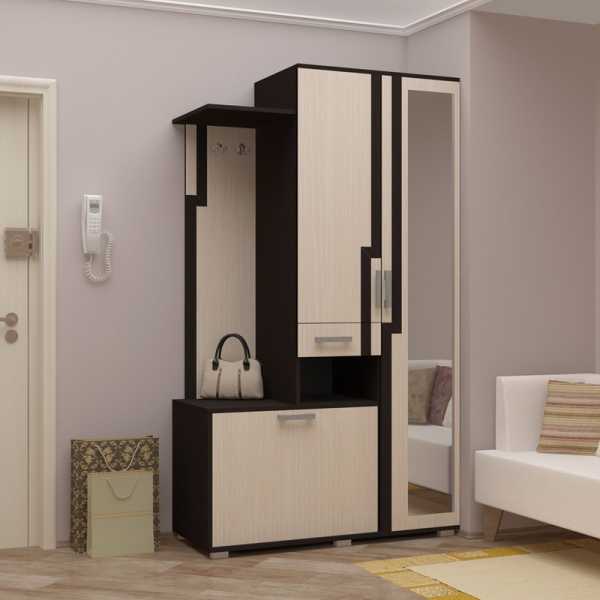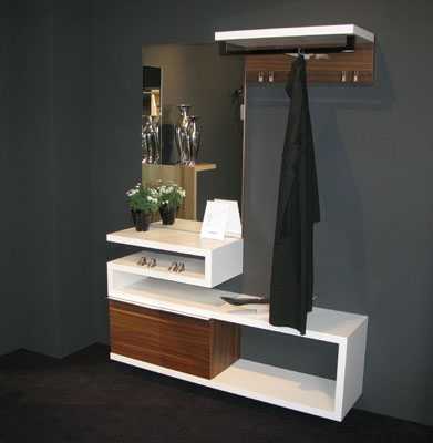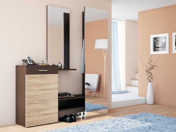 - конструкция — мебель для обустройства небольшой прихожей отличается строгостью и лаконичностью форм;