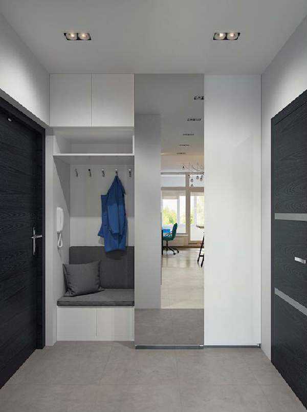 Кроме оформления помещения в светлых тонах есть и другие методы, экономящие место и придающие коридору дополнительный объем: