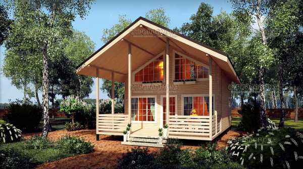 Загородный дом обычно возводят с верандой – пристройкой с большими окнами во всю стену. Дачный домик 6х6 с мансардой или без нее можно дополнить открытой просторной террасой.