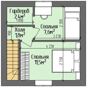 Также на нижнем этаже должны будут находиться комнаты общего пользования. Когда вы подниметесь по лестнице на второй этаж, то там будет одна комната – это спальня, в которой находится санузел. Но при составлении проекта необходимо учитывать количество человек, которое собирается проживать в доме. Если их 2-3, то второй этап стоит оставить для одной спальни. Если в дом будет заселяться целая семья, то обустроить несколько спален, но только небольшого размера.