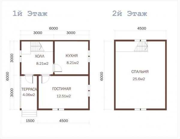 Планировки одноэтажных и двухэтажных домов 6 на 6 метров