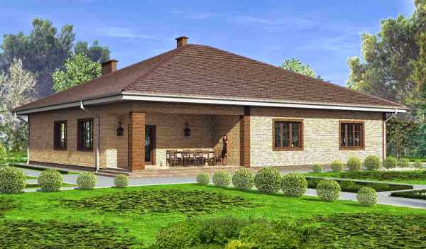Удачный проект одноэтажного дома с верандой