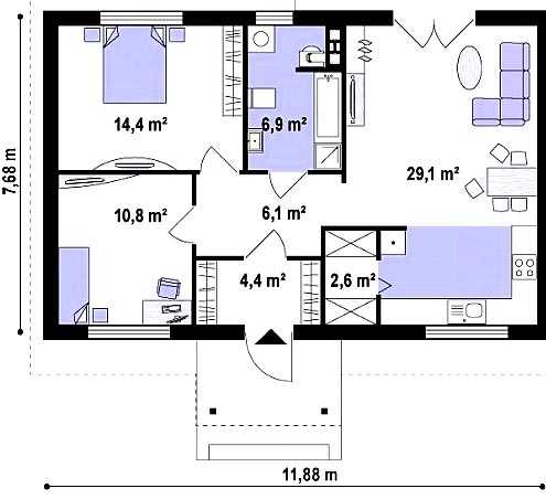 5. Проекты домов с 2 спальнями: оптимальные площади помещений