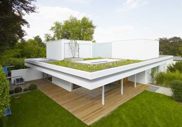 Одноэтажные и двухэтажные проекты домов с плоской кровлей. В современном мире появились технологии благодаря которым, можно сделать прочную, герметичную и безопасную крышу. Ко всему этому плоскую кровлю уже стали эксплуатировать в основном для отдыха, оформить в виде террасы или спортивного места, к примеру, для игры в настольный теннис. Ещё одни достоинства плоской крыши в двухэтажном частном доме — это получение объемного второго этажа с высокими потолками и просторными светлыми помещениями.