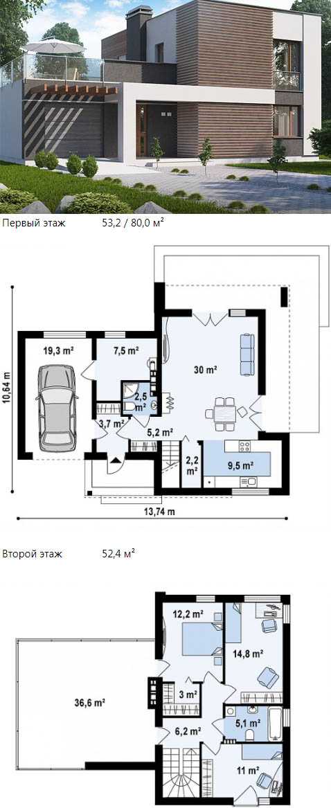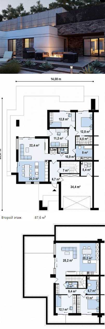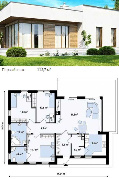 Проекты домов с плоской крышей одно и двухэтажных, схемы и фото