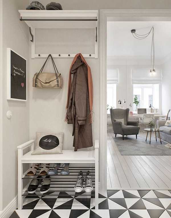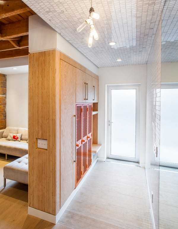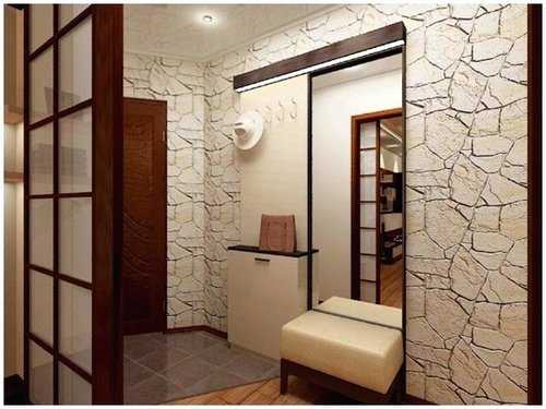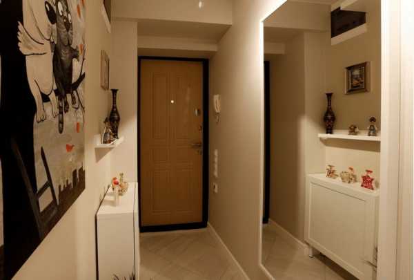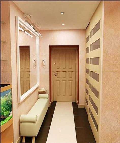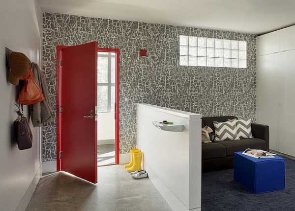 Проходной коридор. В малогабаритных квартирах входная дверь располагается так, что вошедший оказывается на месте, где ходят даже босиком. Грамотный дизайн призван зрительно зонировать пространство, предусмотреть удобные места для хранения верхней одежды, обуви. Благодаря этому легче поддерживать чистоту.