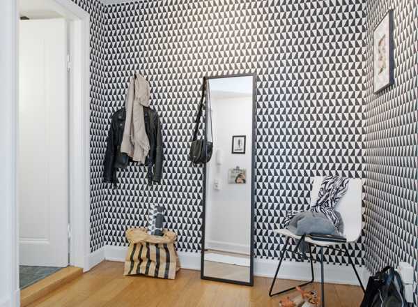 Для отделки стен в небольшом коридоре лучше использовать моющиеся обои светлых оттенков