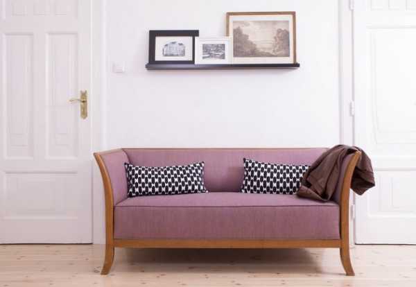 Мебель без рельефной фурнитуры, открытые полки будут скромно выполнять свою функцию, не захватывая все внимание на себя. Как украшение можно повесить несколько горизонтальных фотографий, картин, раритетных афиш.
