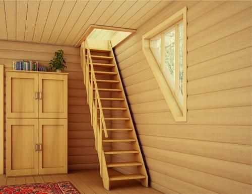 Установка лестницы в деревянном доме должна осуществляться не раньше, чем через 10-12 месяцев после начала эксплуатации здания. Причина заключается в том, что деревянное строение за это время может дать усадку до 10% высоты, что, естественно, отразится на конструкции лестницы, как междуэтажного связующего элемента.