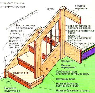 - главные несущие части — косоуры и тетива;