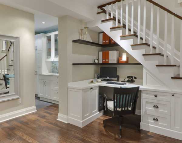 Пример эффективного использования пространства под лестницей.